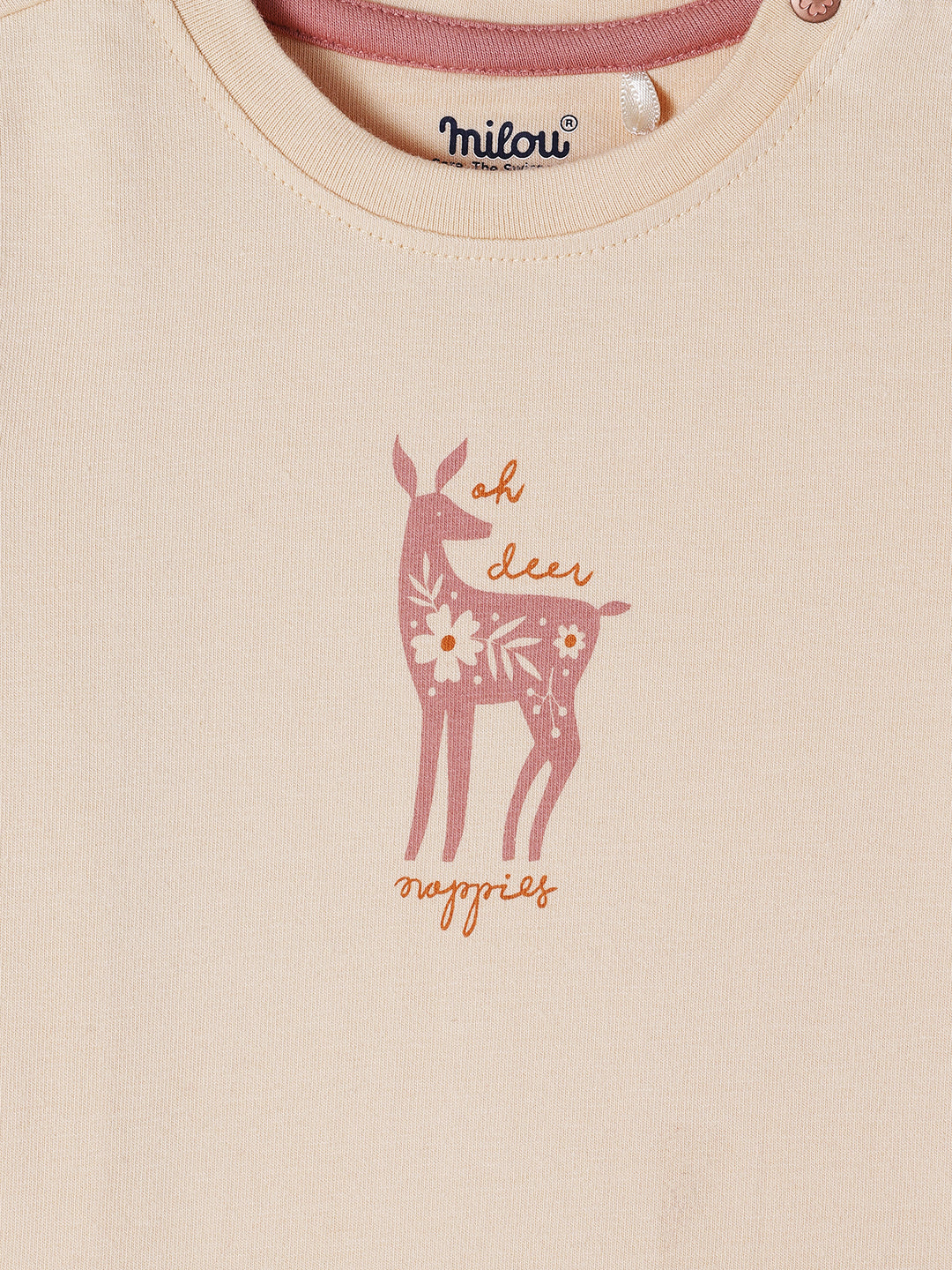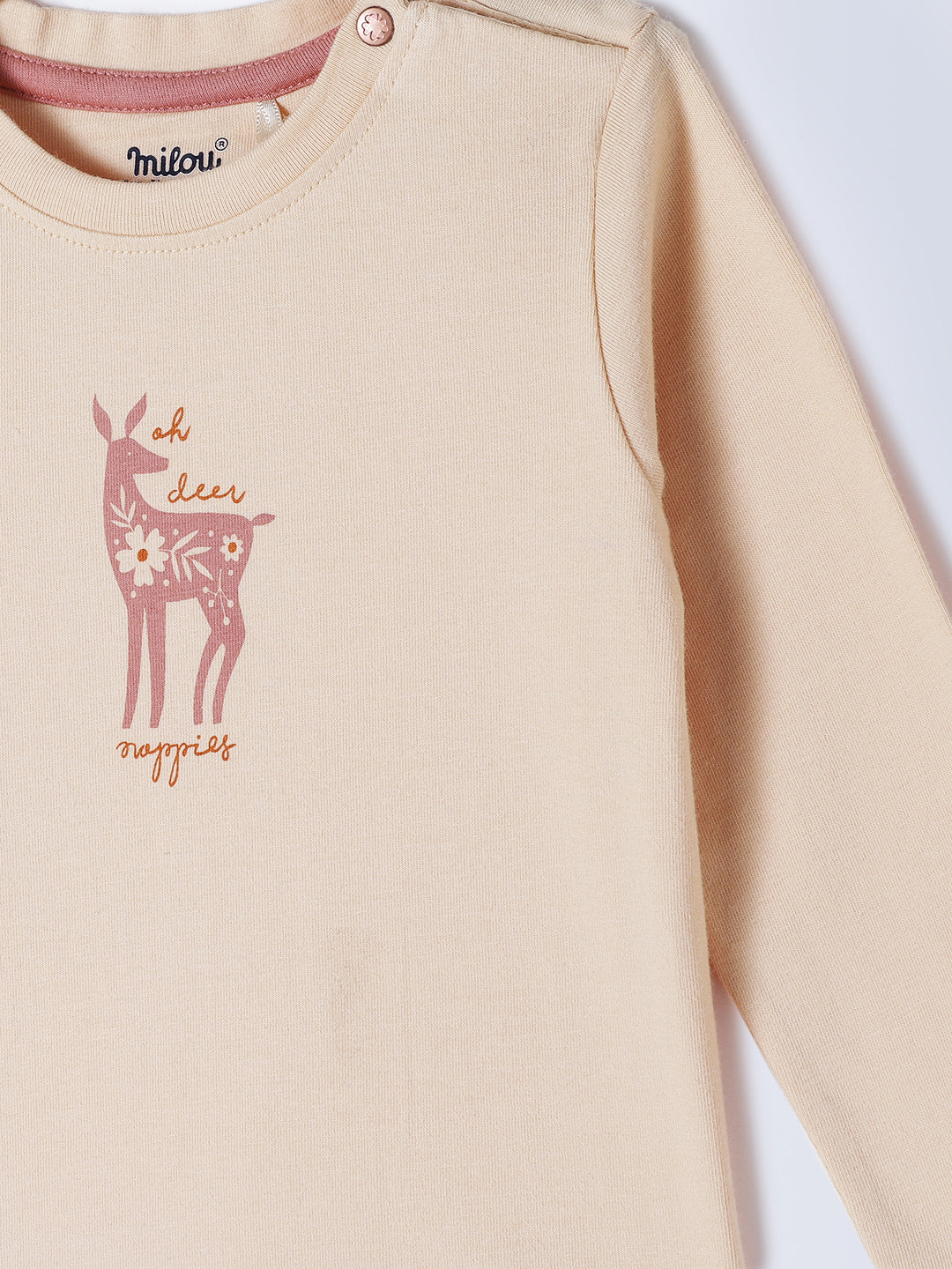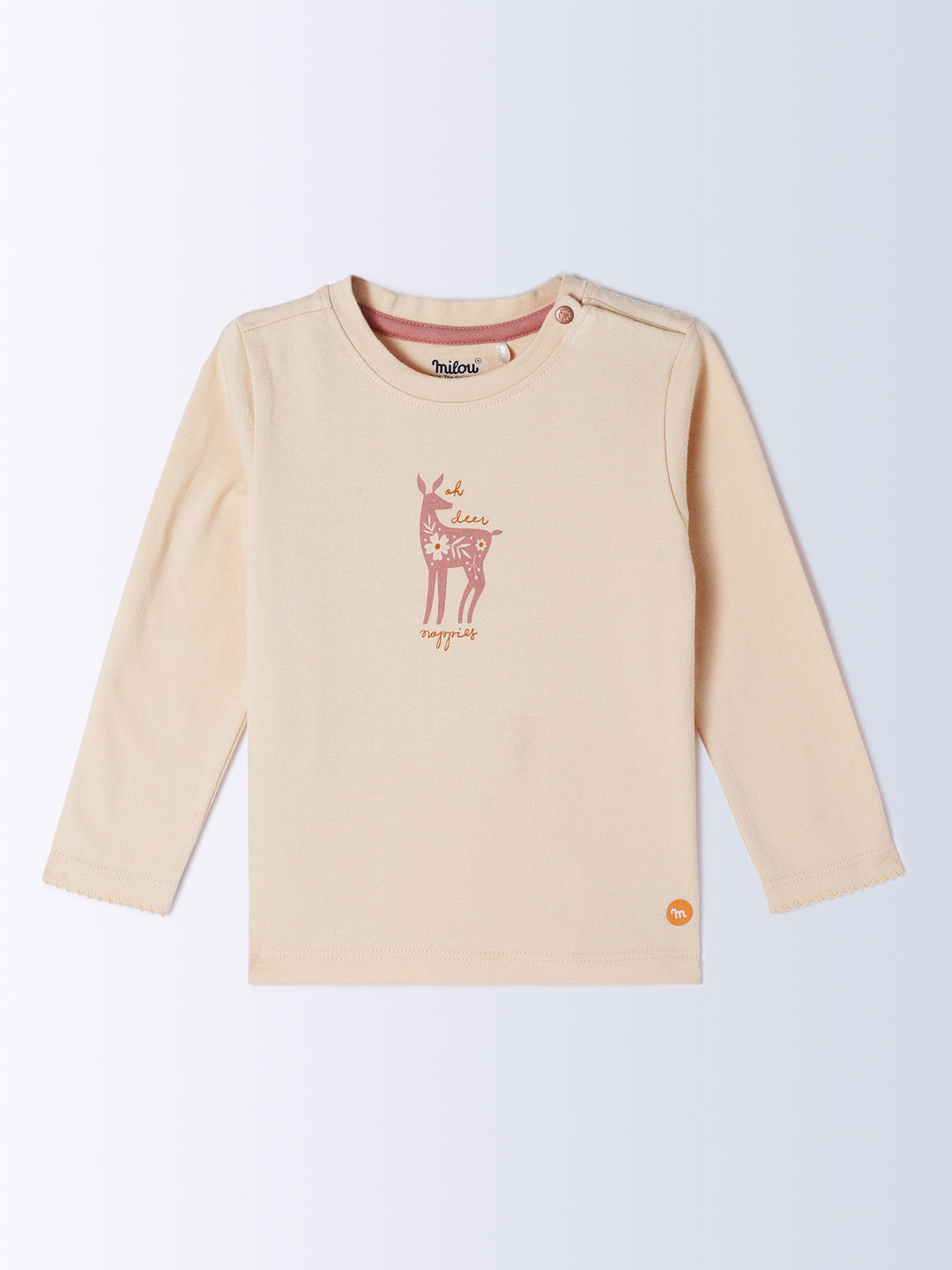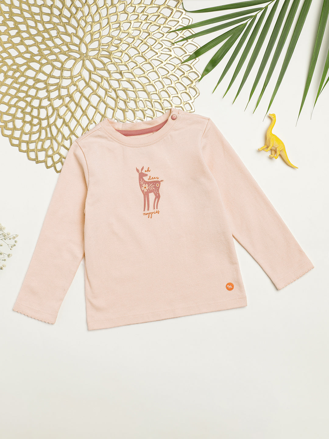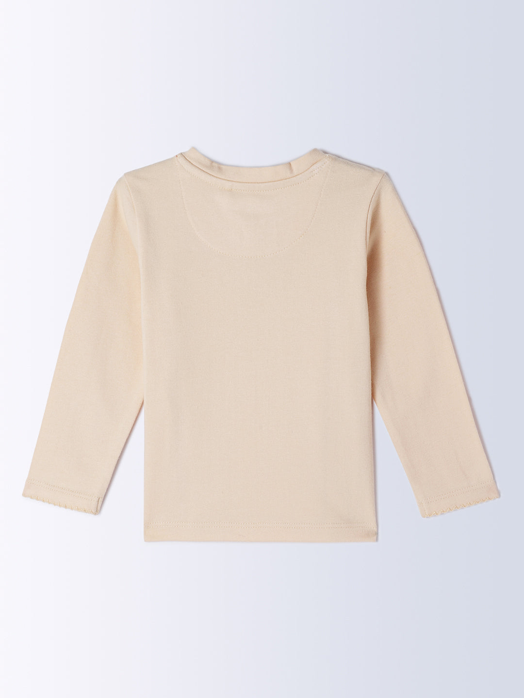 Round neck, chest printed full sleeve T-shirt. Crafted with the soft 100% Cotton fabric, treated with bio wash, to ensure the safest and most comfortable clothing for the young ones.