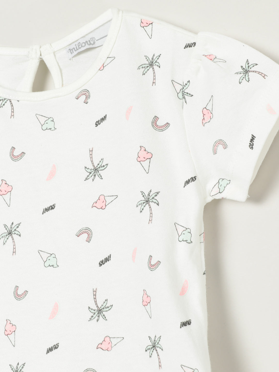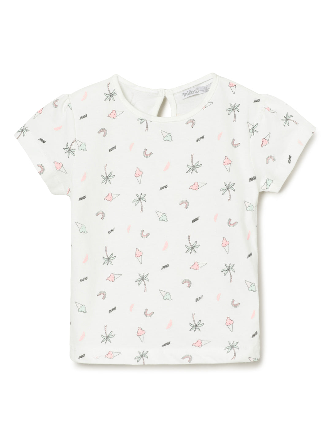 All Over Printed half sleeve T-shirt. Crafted with the soft 100% Cotton fabric, treated with bio wash, to ensure the safest and most comfortable clothing for the young ones.