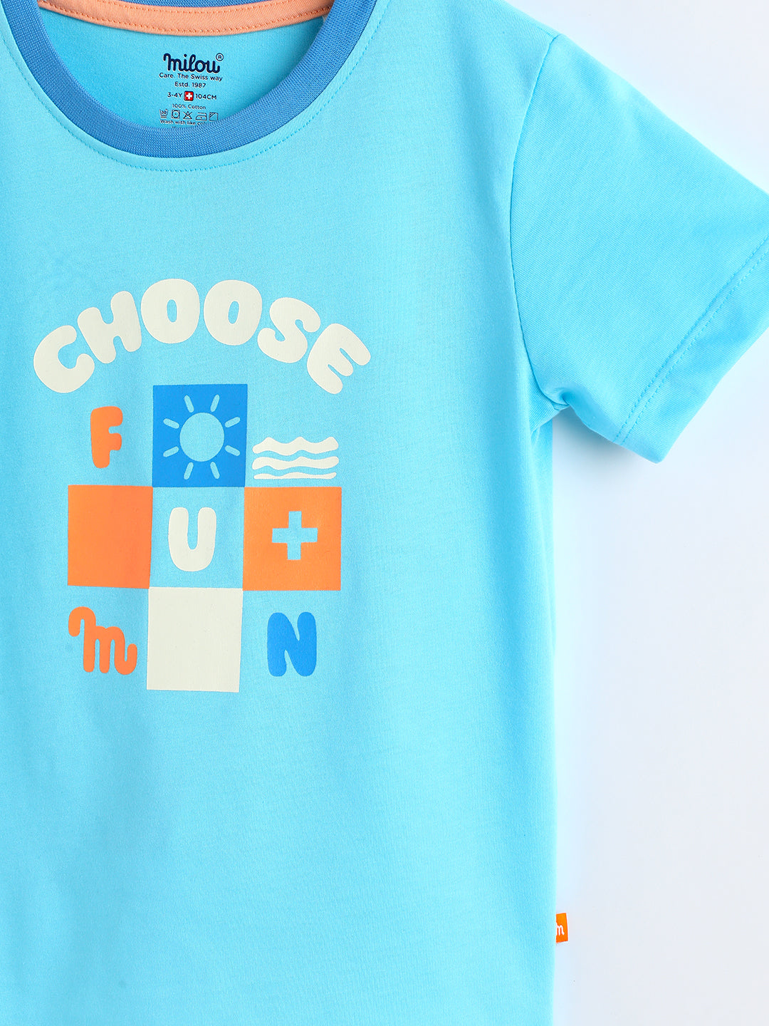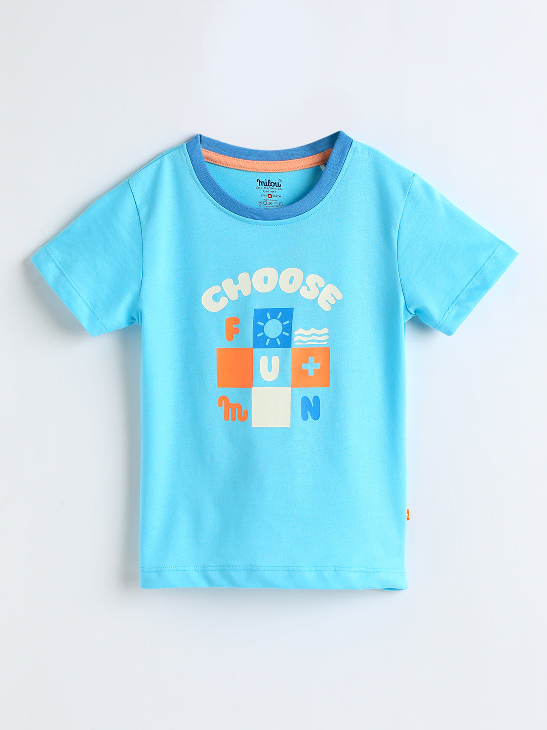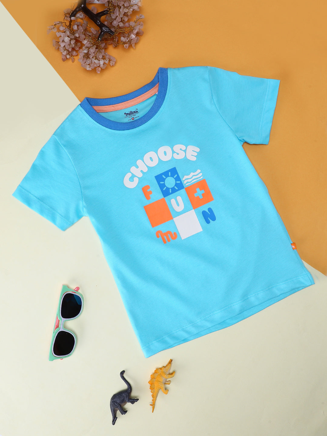 Half sleeve Round neck T-shirt. Crafted with the soft 100% Cotton fabric, treated with bio wash, to ensure the safest and most comfortable clothing for the young ones.