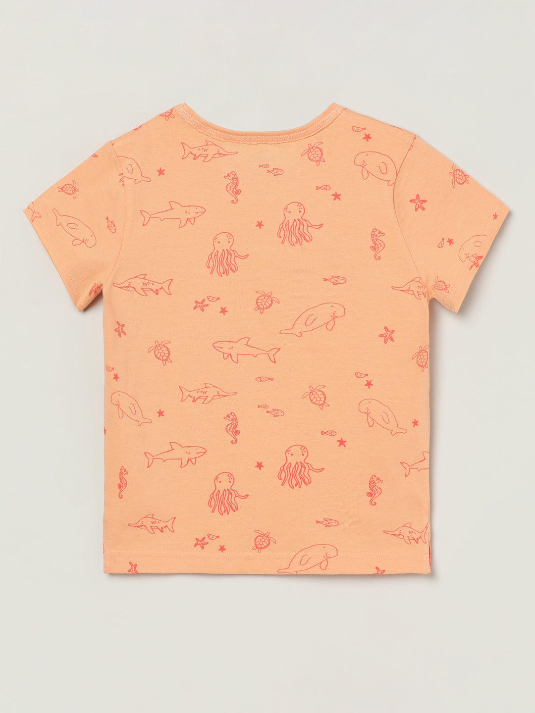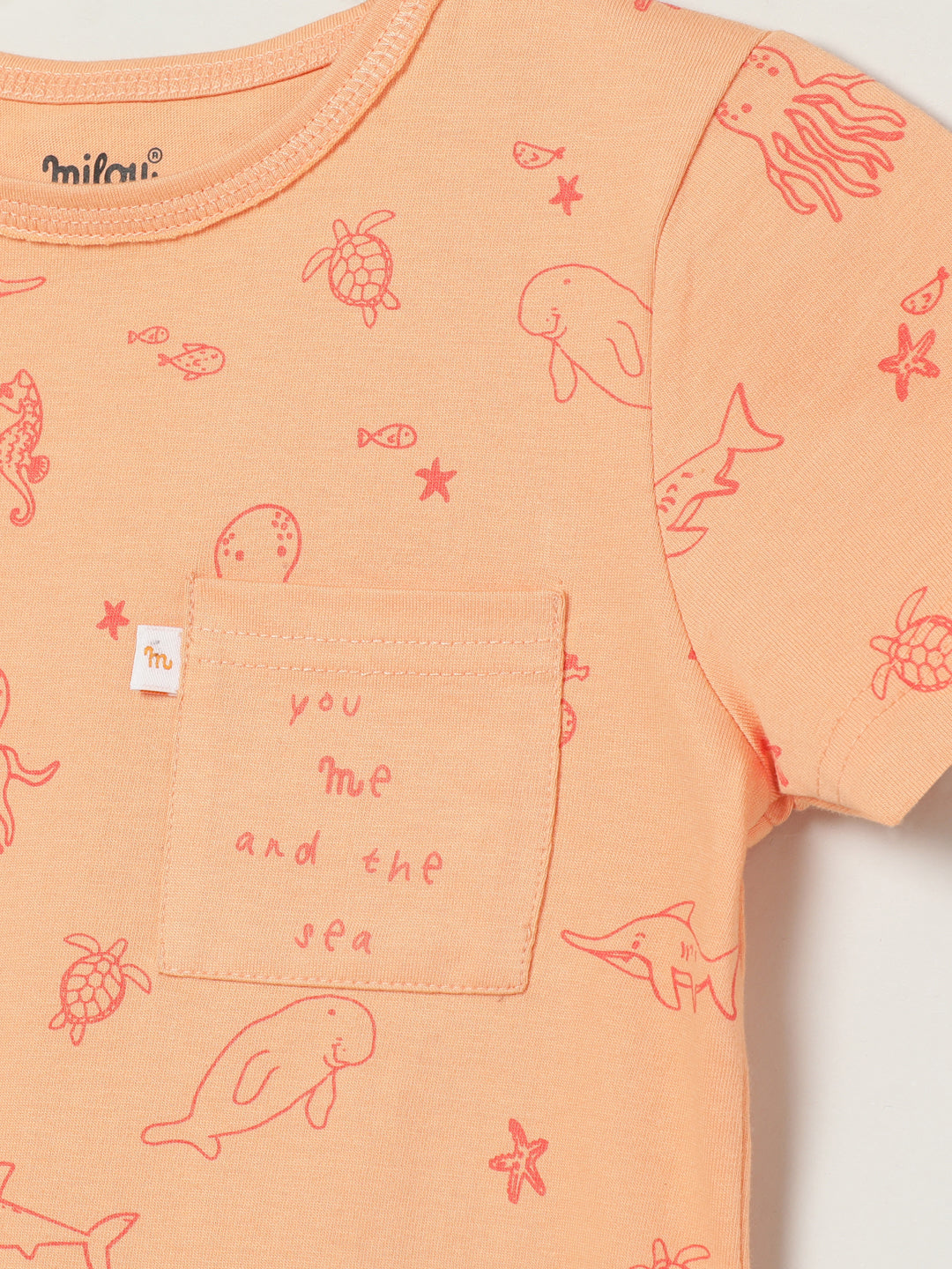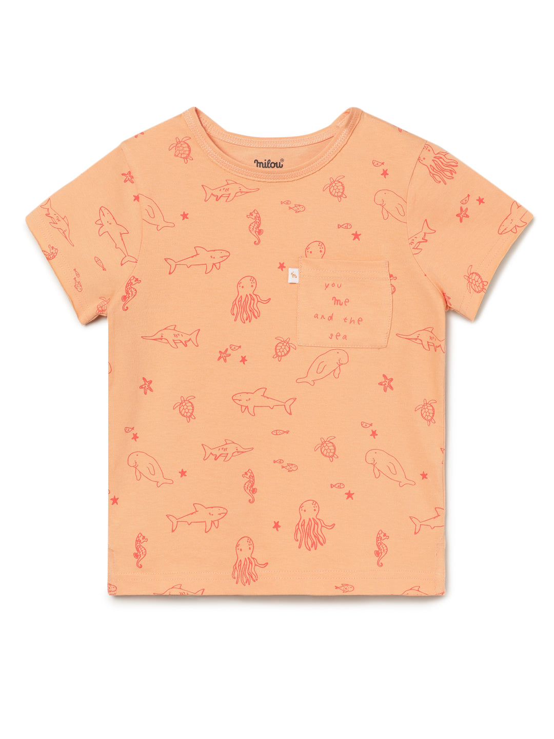 Milou Kids Half Sleeves Cotton Bio Washed Printed T-Shirt for Boys -Peach