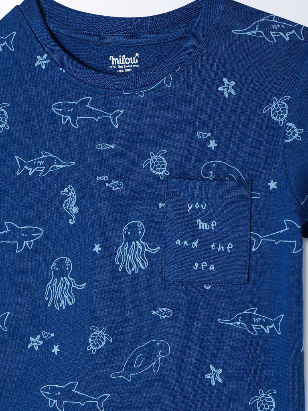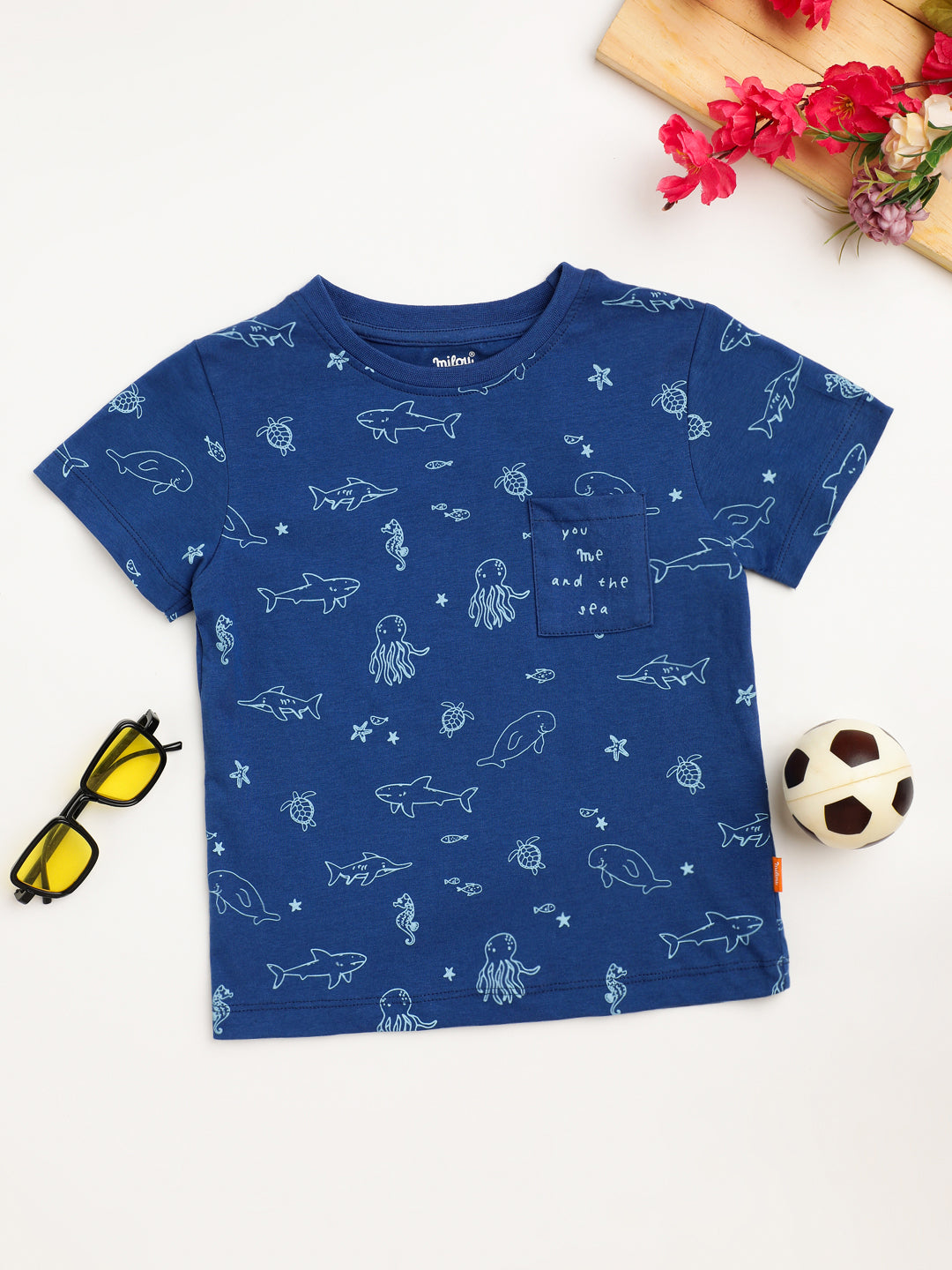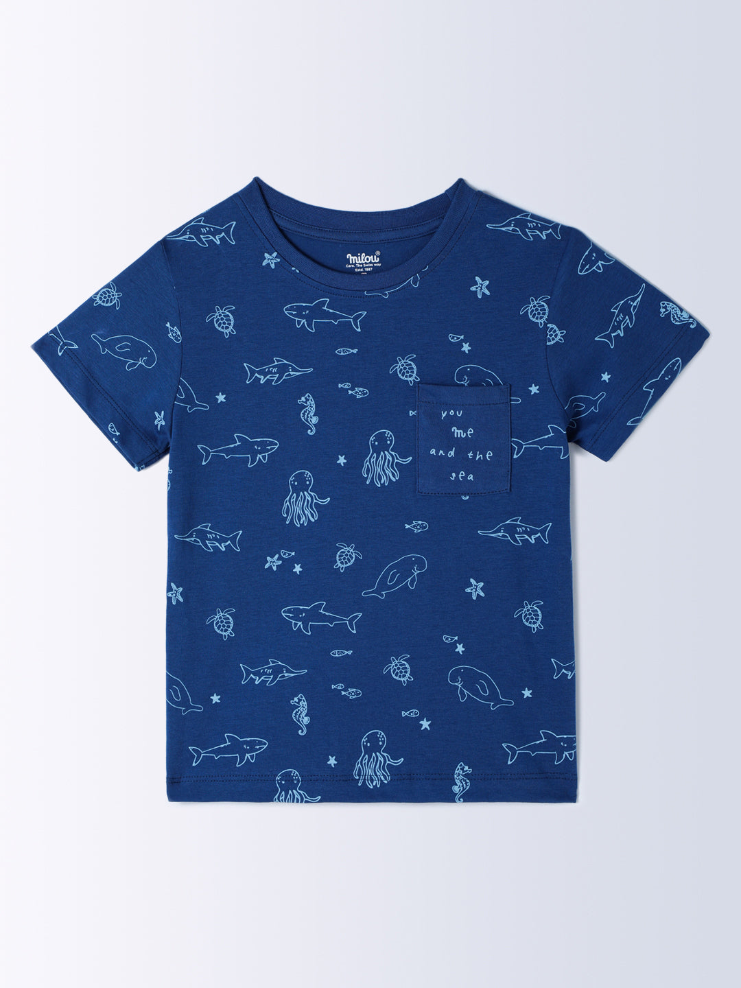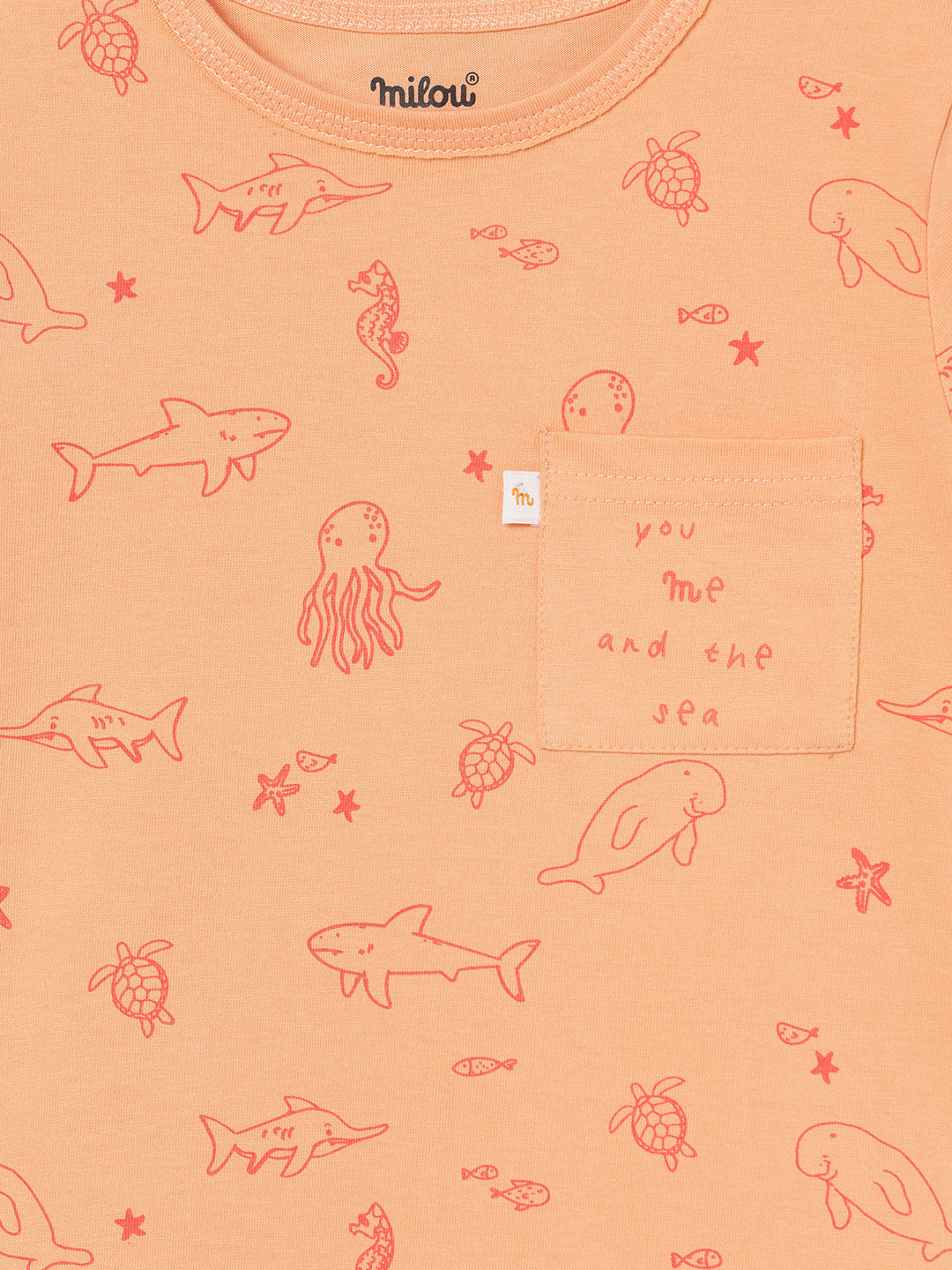 Milou Kids Half Sleeves Cotton Bio Washed Printed T-Shirt for Boys -Peach