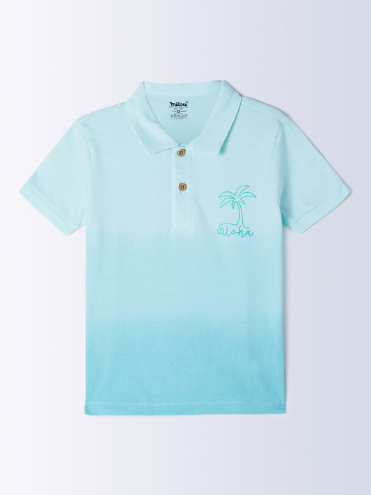 Milou Kids Cotton Bio Washed Half Sleeve Polo Neck T-Shirt for Boys - Light Blue