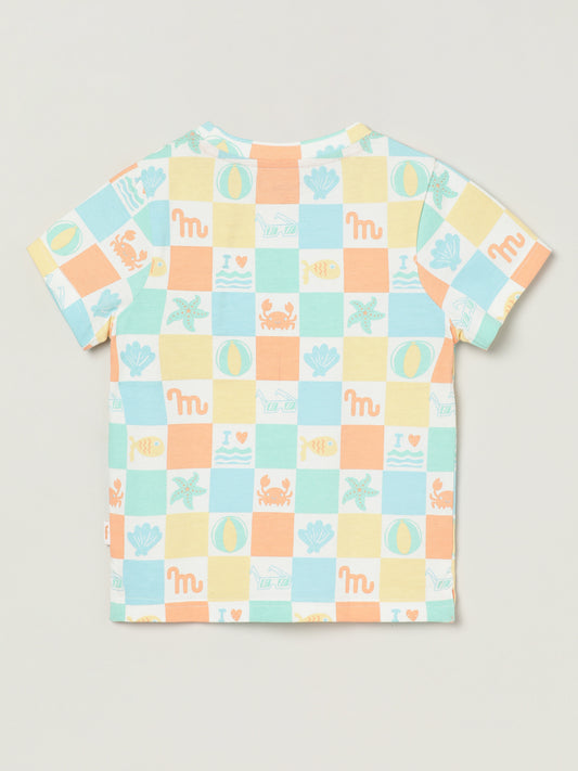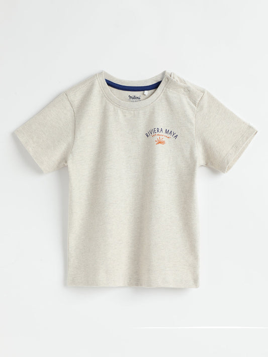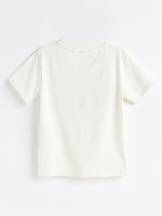 Milou Kids Half Sleeve Cotton Bio Washed Printed T-Shirt for Boys -White Alyssum