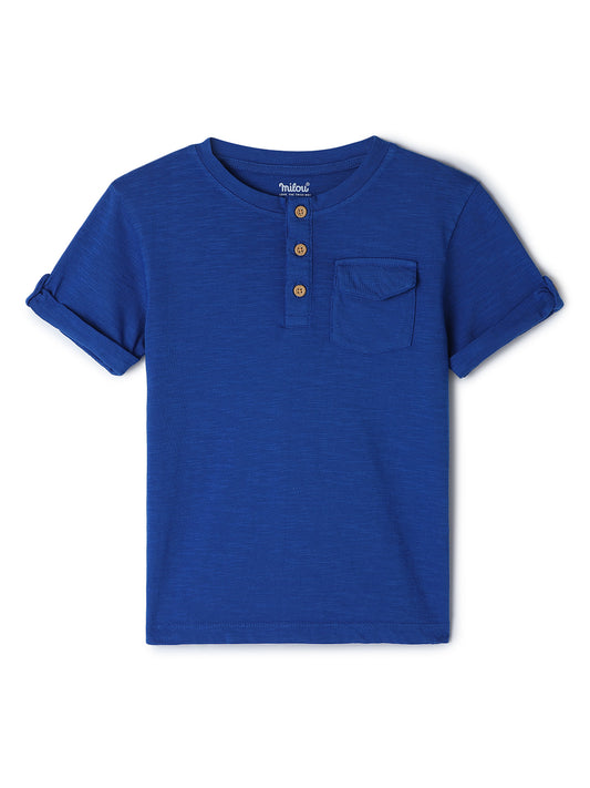 Milou Kids Cotton Half Sleeves Henley Neck Bio Washed T-Shirt for Boys TBNCTEE005