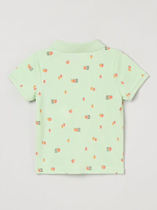 Milou Kids Half Sleeve Cotton Bio Washed Green Coloured Printed Polo T-Shirt for Boys -Pastel Green