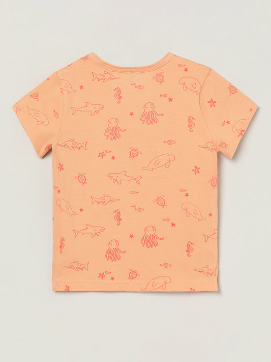 Milou Kids Half Sleeves Cotton Bio Washed Printed T-Shirt for Boys -Peach