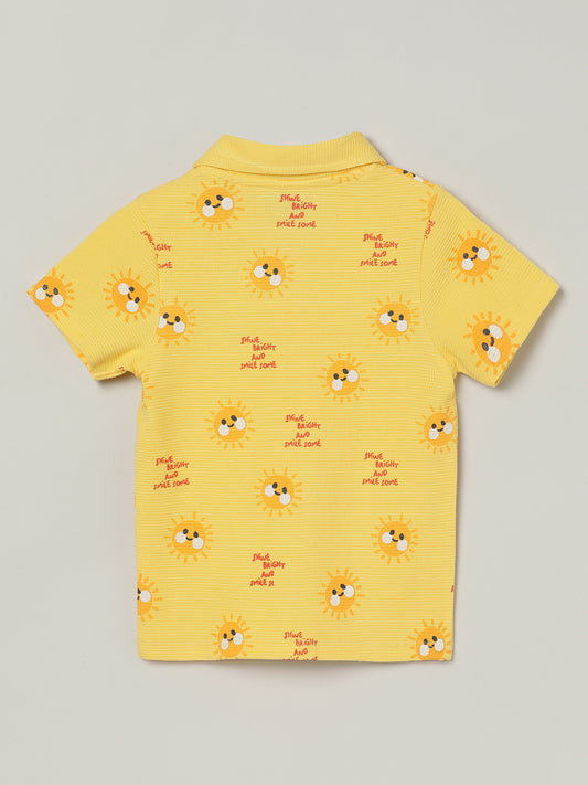 Milou Kids Half Sleeve Cotton Bio Washed Printed Polo T-Shirt for Boys -White Alyssum