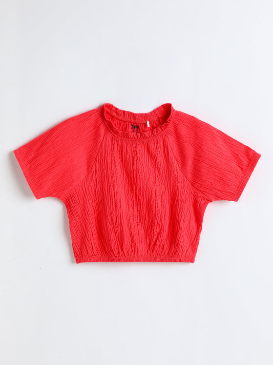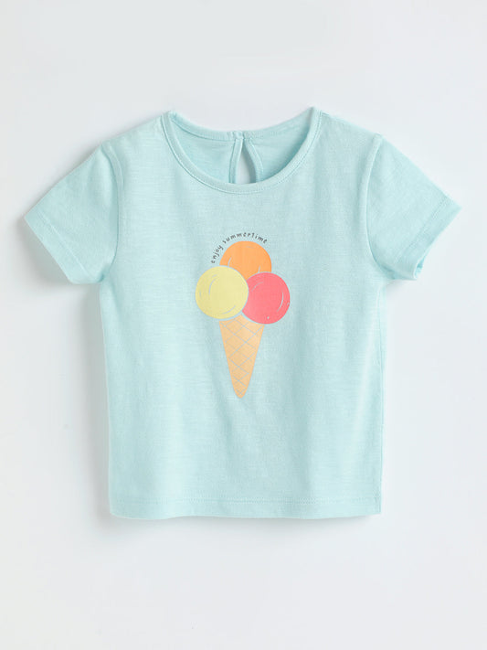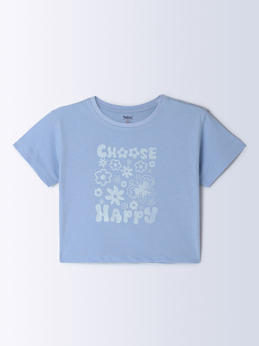 Milou Kids Cotton Half Sleeves Printed Crop Bio Washed Top for Girls -Blue