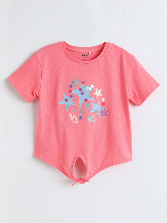 Milou Kids Cotton Bio Washed Printed Top for Girls -TGVGTS040-PKMST