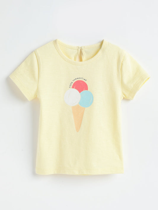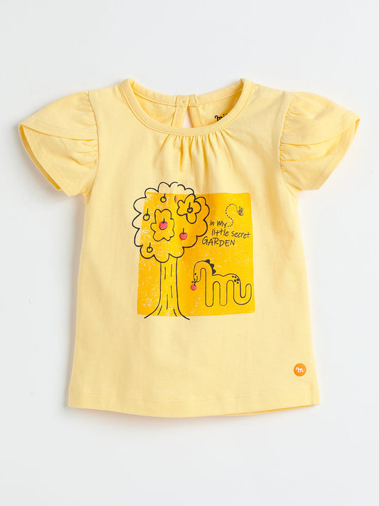 Milou Cotton Frilled Half Sleeves Bio Washed Placement Printed Top - Yellow