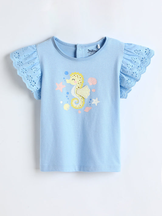 Milou Kids Cotton Bio Washed Printed Top for Girls -SUGTEE016-BL