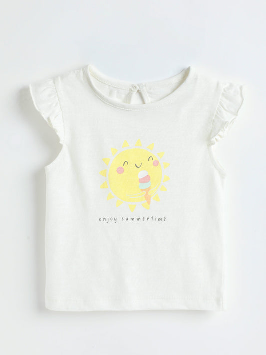 Milou Kids Cotton Bio Washed Printed Top for Girls -SUGTEE016-WH