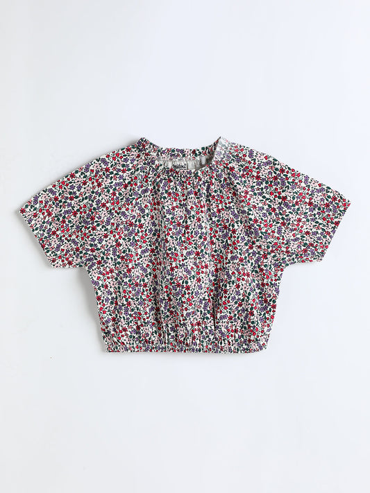 Milou Kids Cotton Bio Washed Printed Top for Girls -TGTP055-CRL