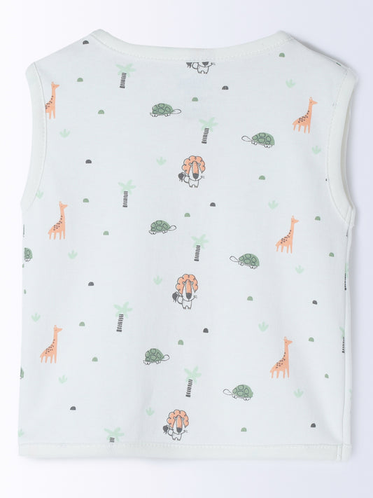 Milou Cotton Sleevesless Bio Washed Printed Jhabla Set - Multi Color