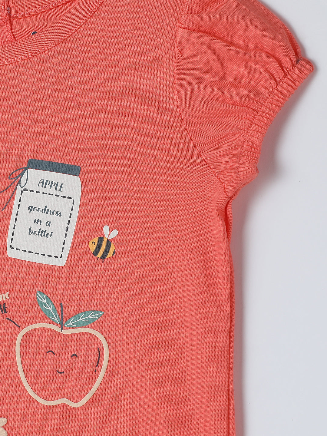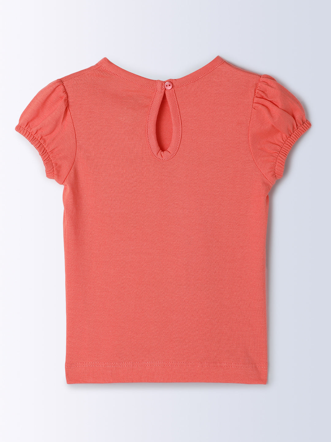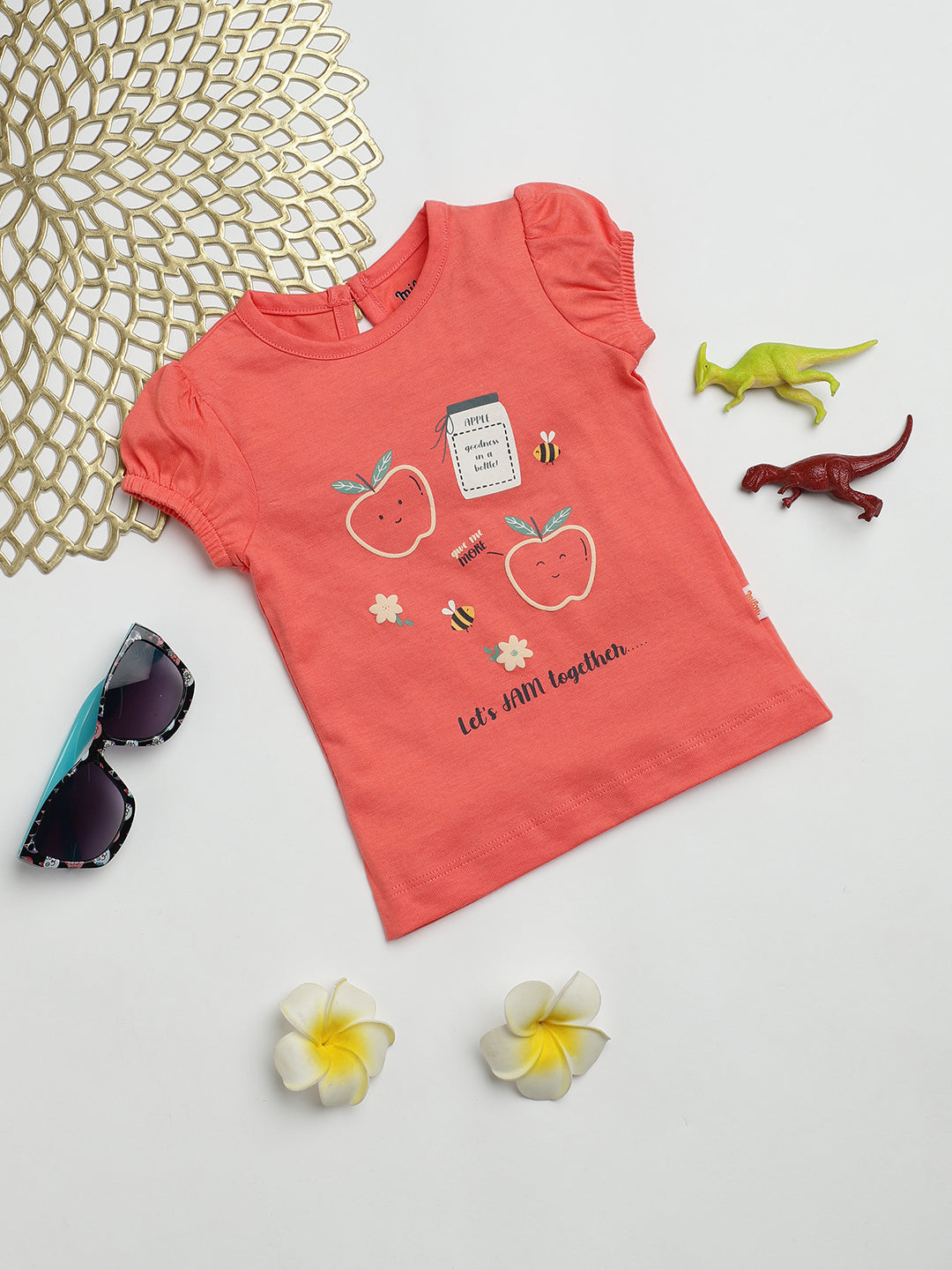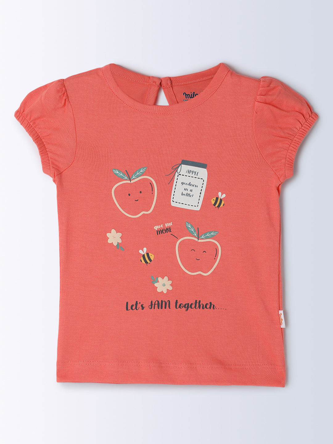Milou Kids Cotton Half Sleeves Printed Bio Washed T-Shirt for Girls -Pink