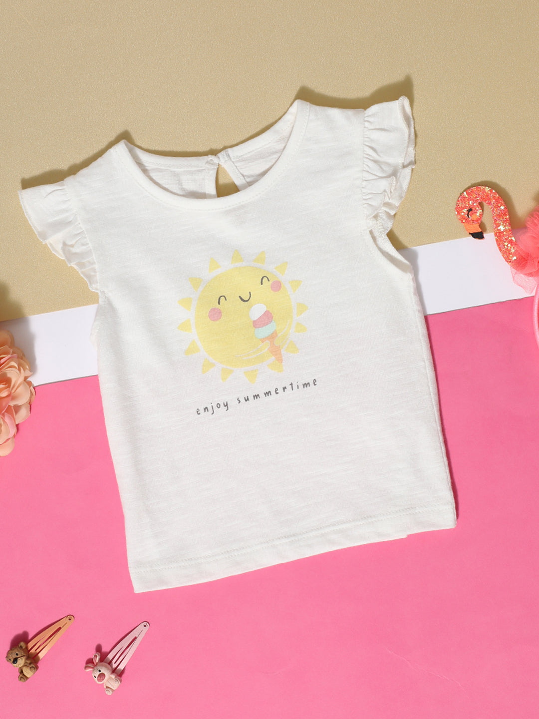 All Over Printed half sleeve T-shirt. Crafted with the soft 100% Cotton fabric, treated with bio wash, to ensure the safest and most comfortable clothing for the young ones.