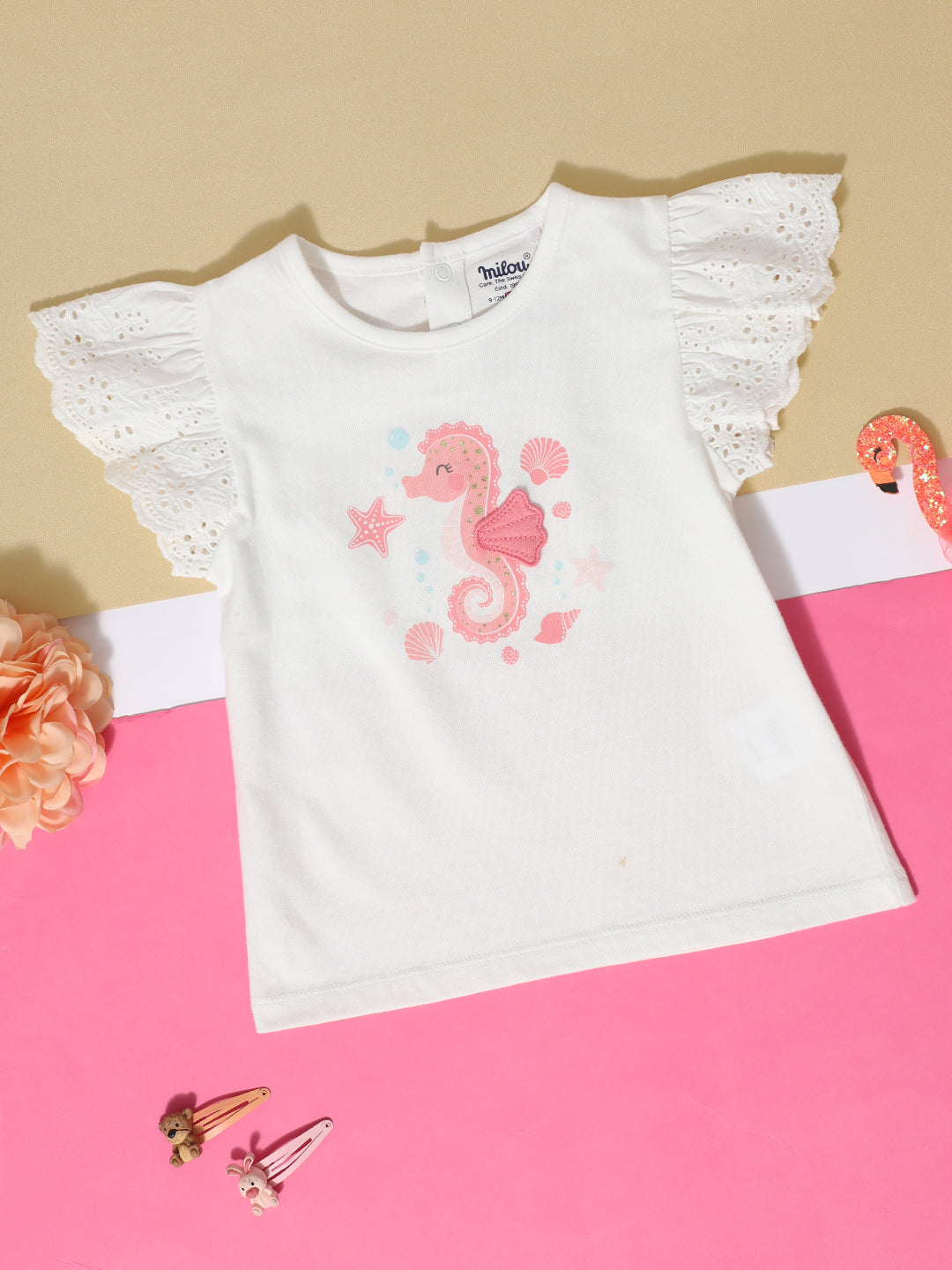 Milou Kids Cotton Bio Washed Printed Top for Girls -MGBBG007-WSPWH