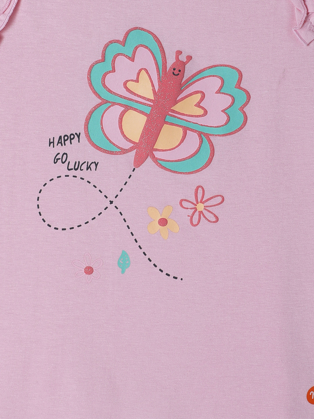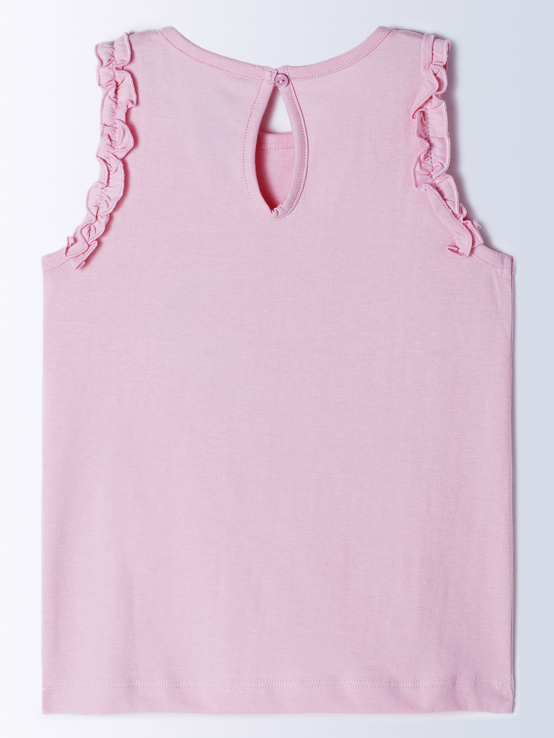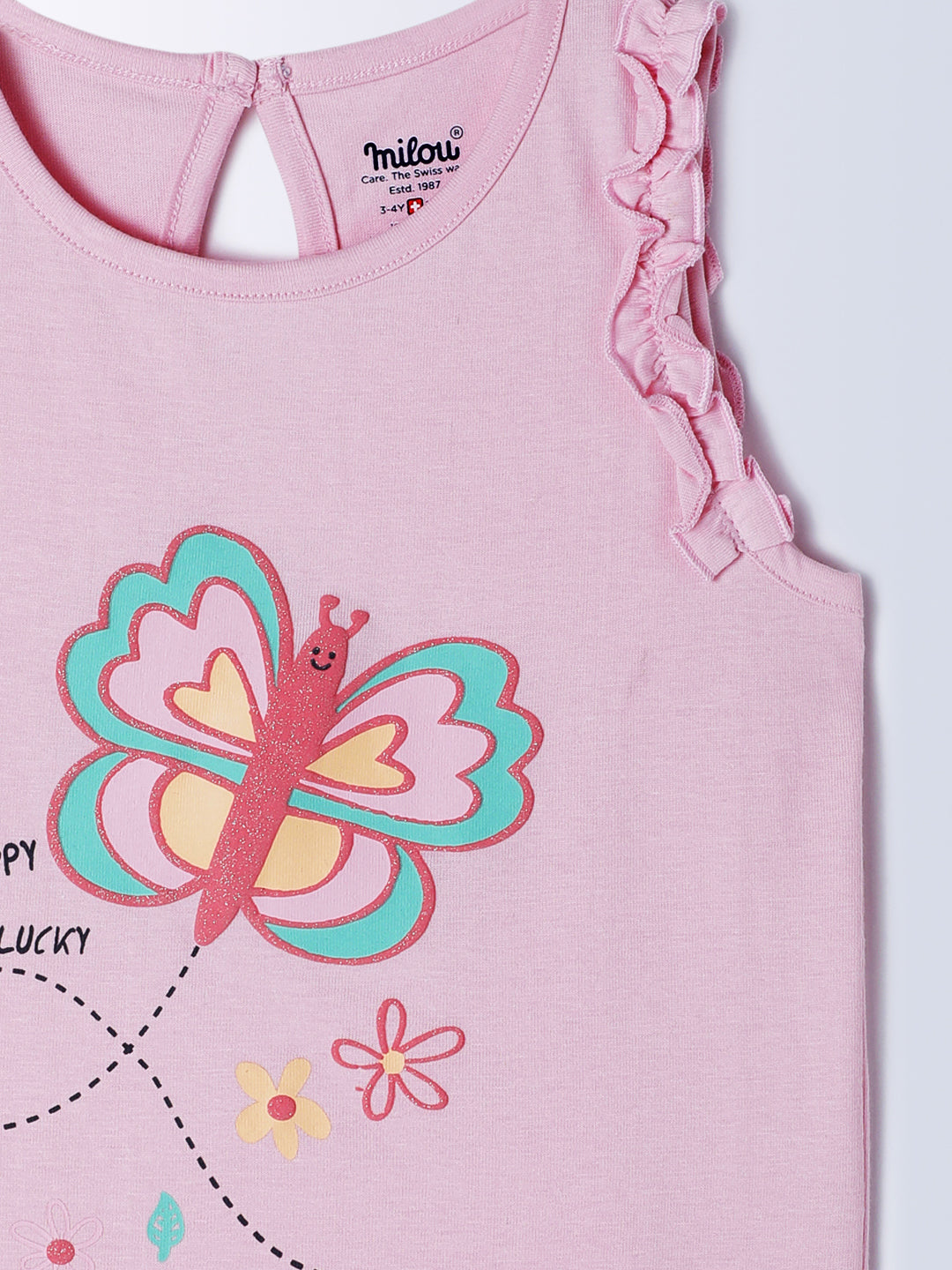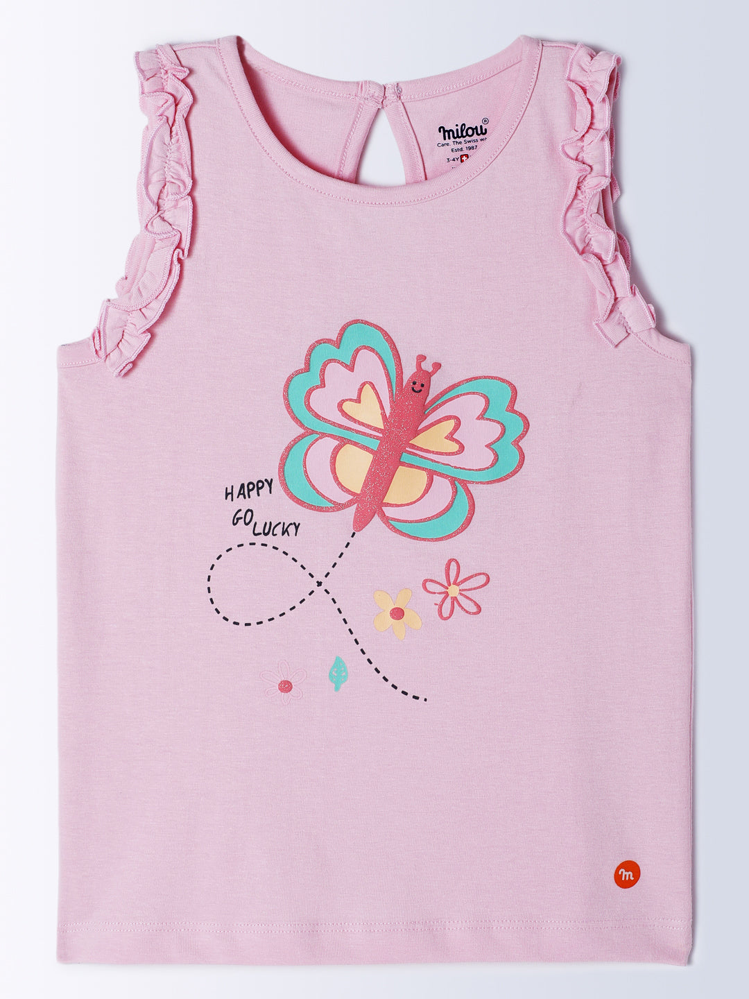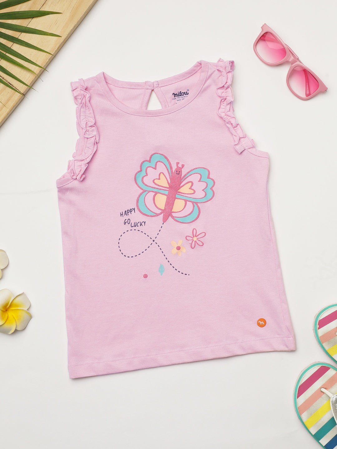 Milou Kids Cotton Bio Washed Sleeveless Printed Top for Girls - Peach