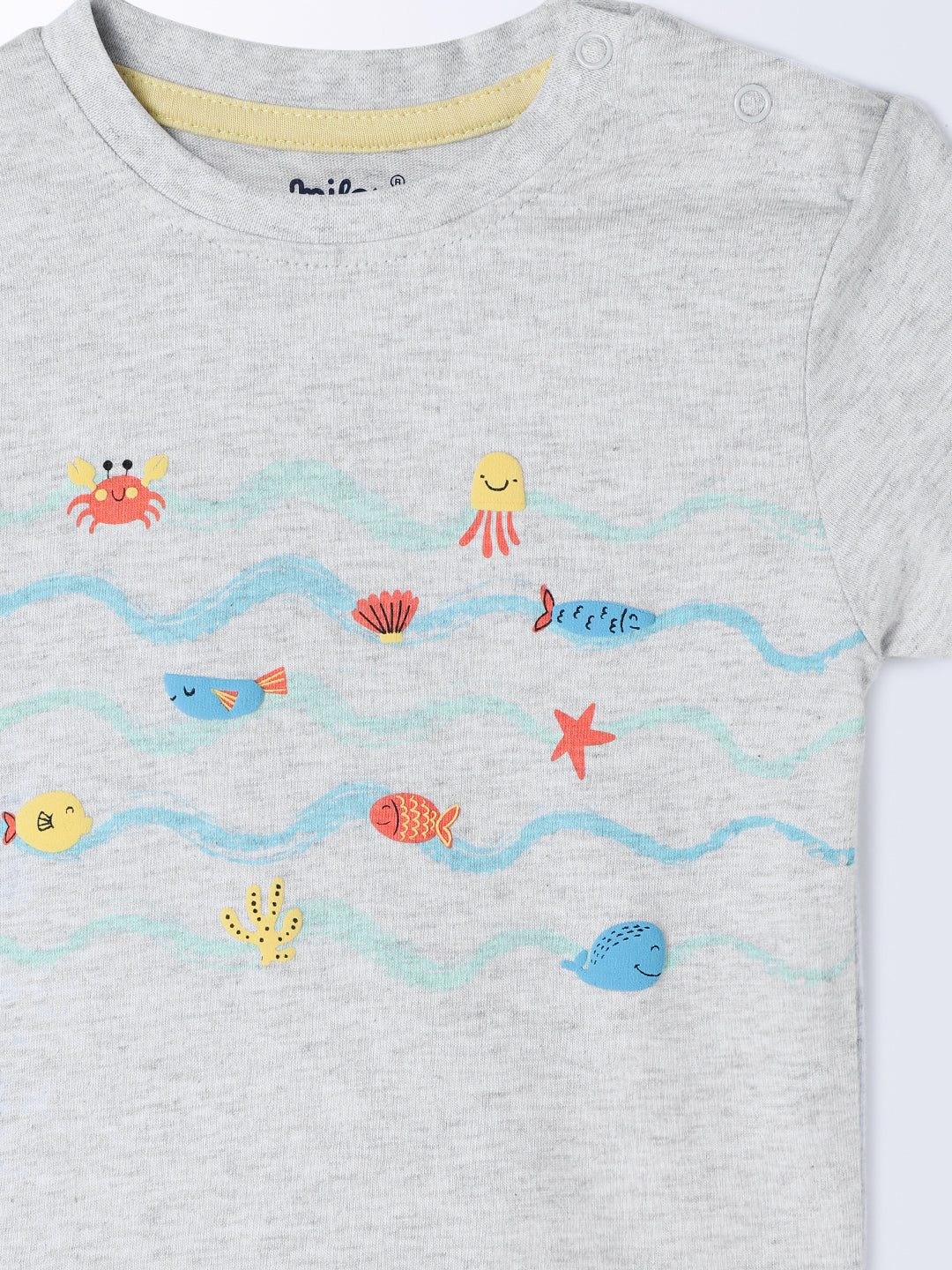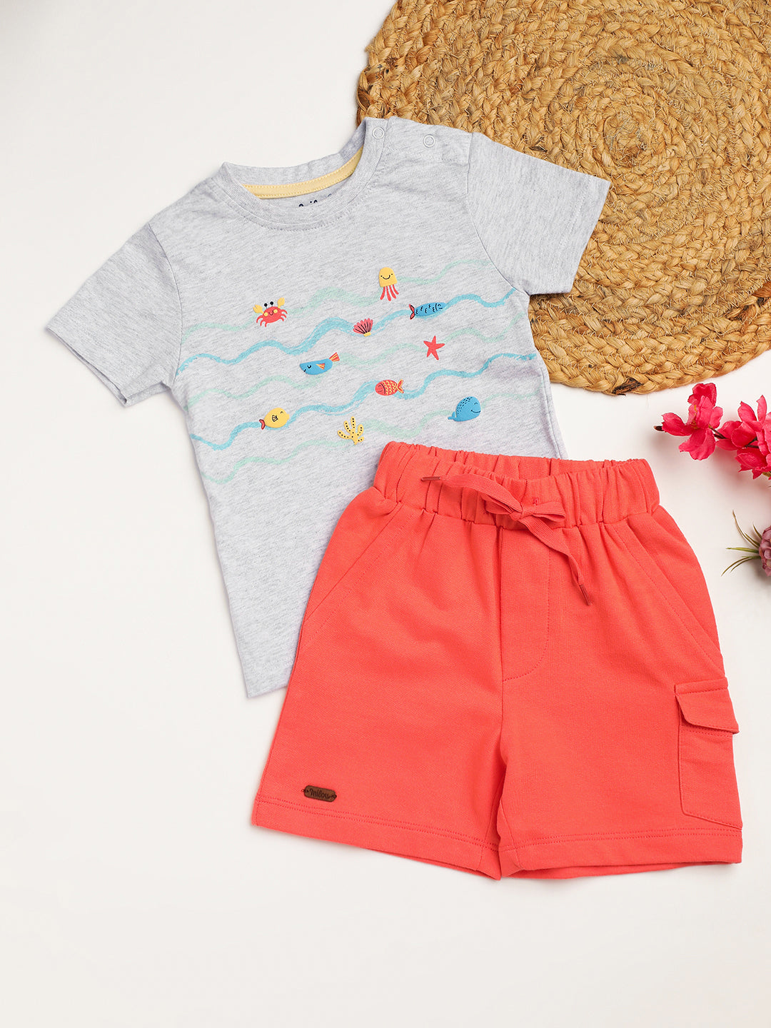Boys Half sleeve Crew neck T-shirt with chest print with knit shorts with functional pockets. Crafted with the soft 100% Cotton fabric, treated with bio wash, to ensure the safest and most comfortable clothing for the young ones.
