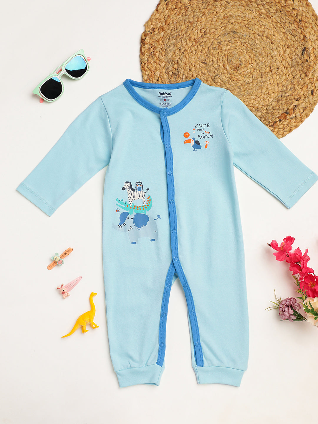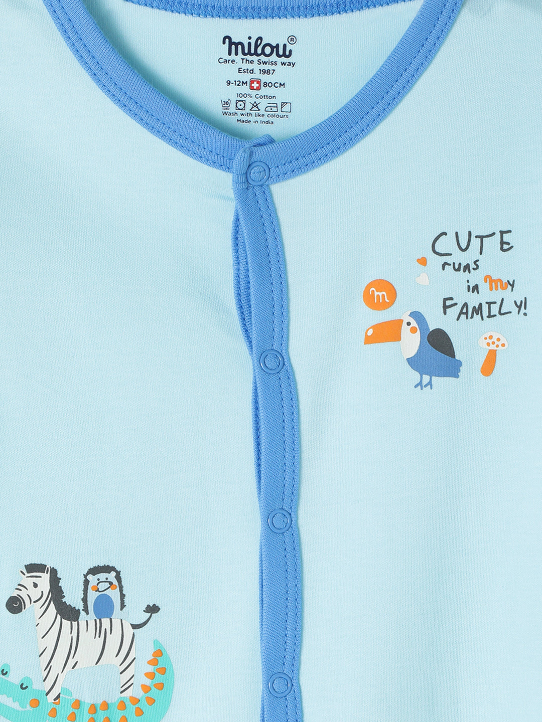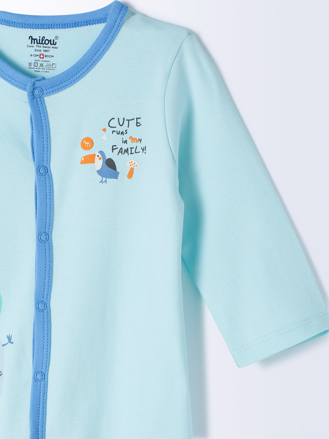 Milou Cotton Half Sleeves Bio Washed Infant Bodysuit - Blue