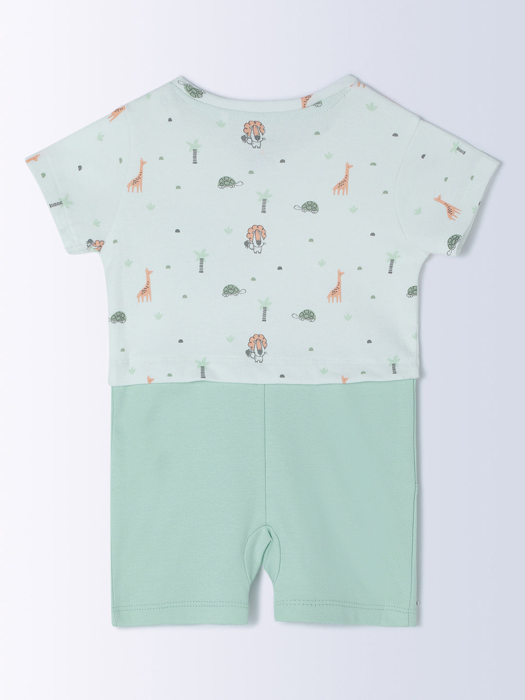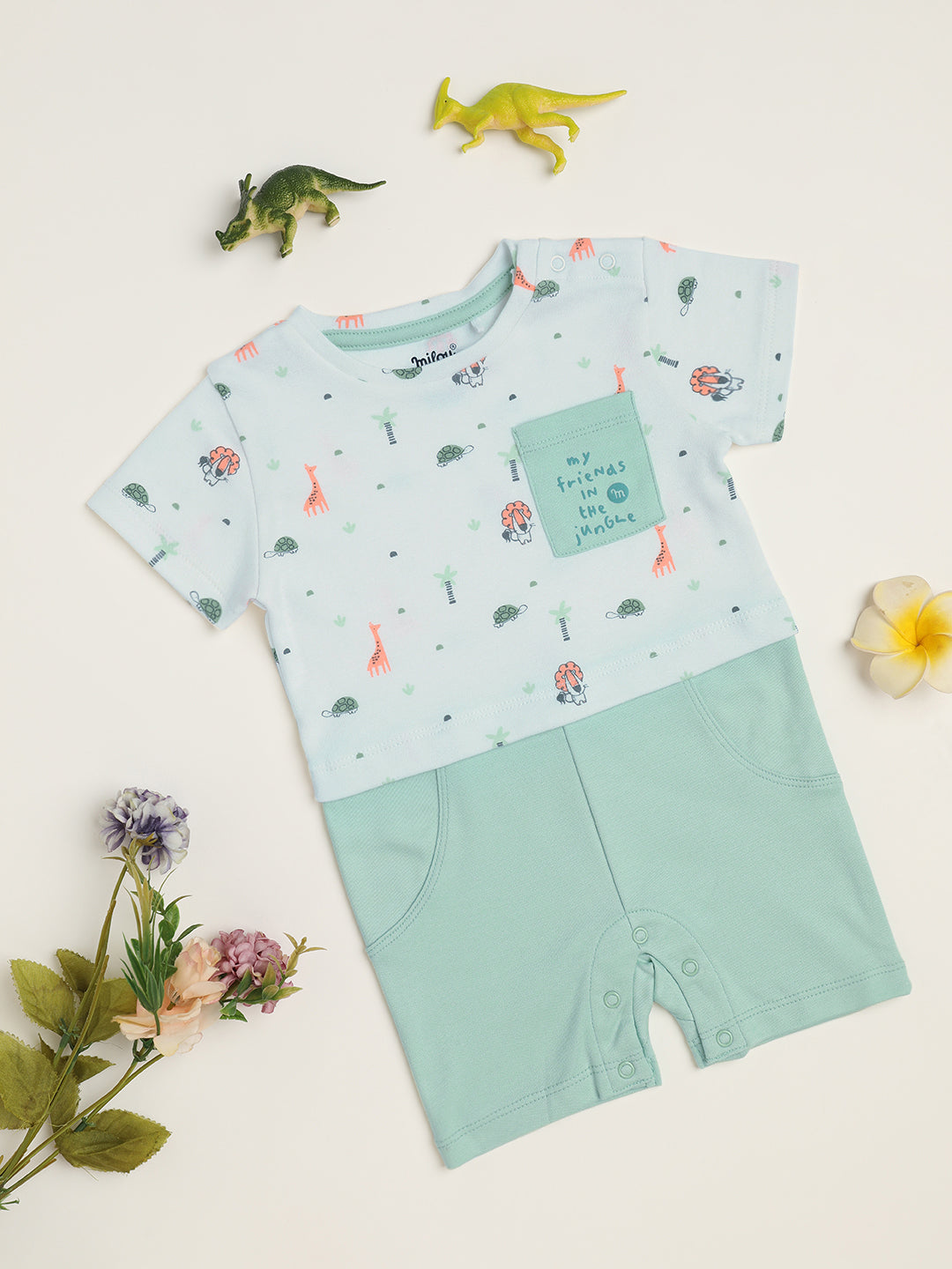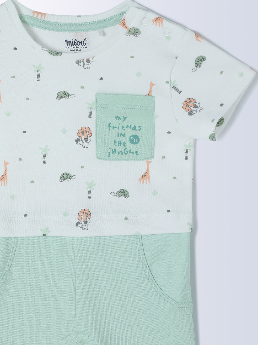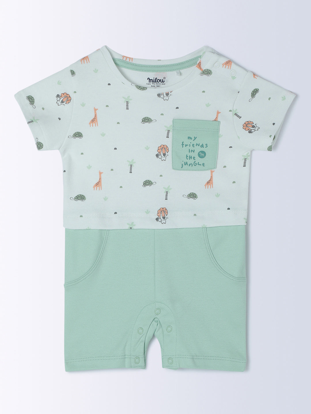 Milou Cotton Half Sleeves Bio Washed Infant Romper - Green