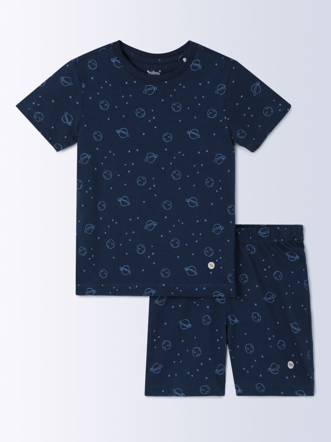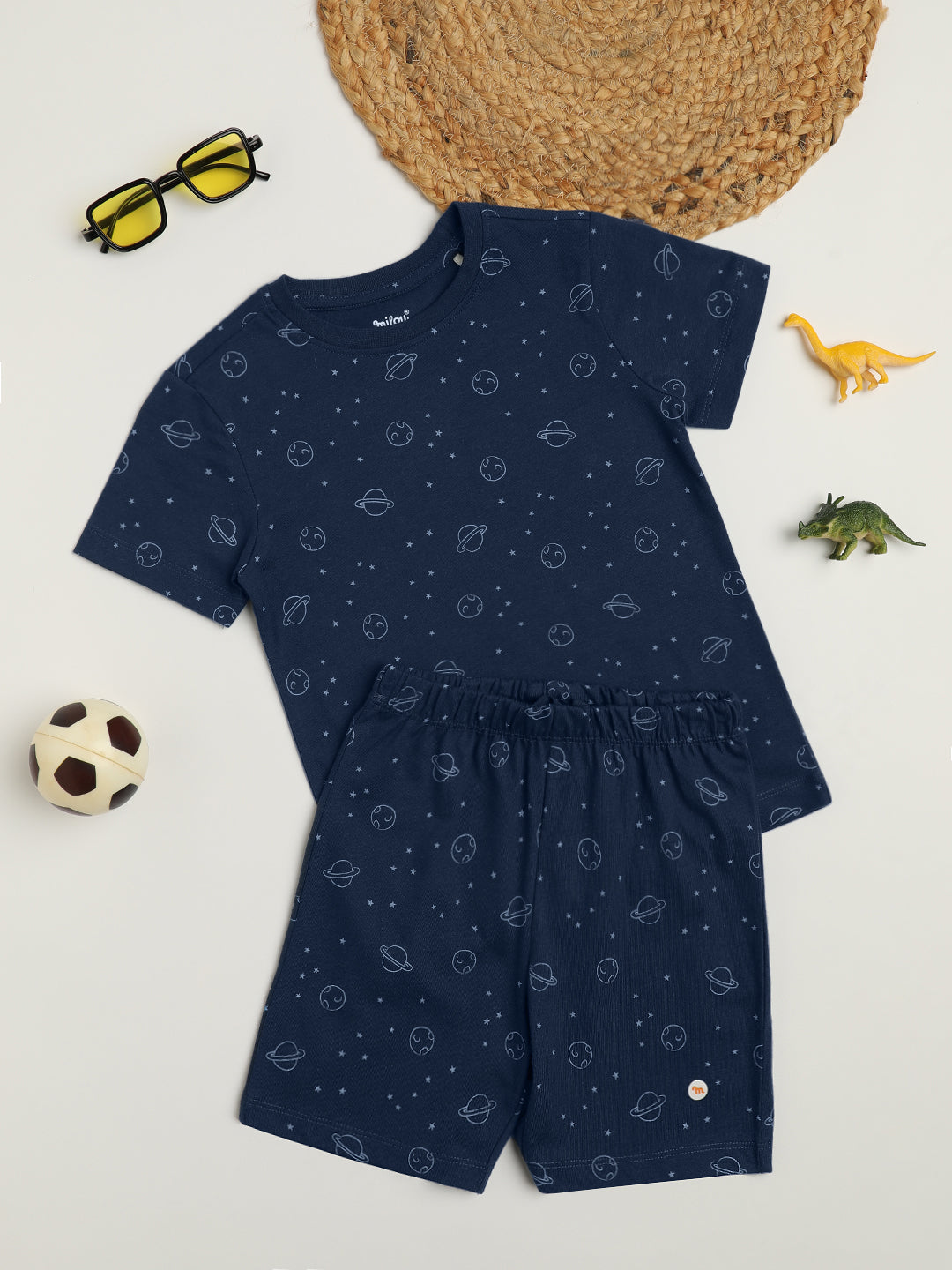 A Home wear set of top and comfortable Shorts. Can also be used as night suit. Crafted with the soft 100% Cotton fabric, treated with bio wash, to ensure the safest and most comfortable clothing for the young ones.